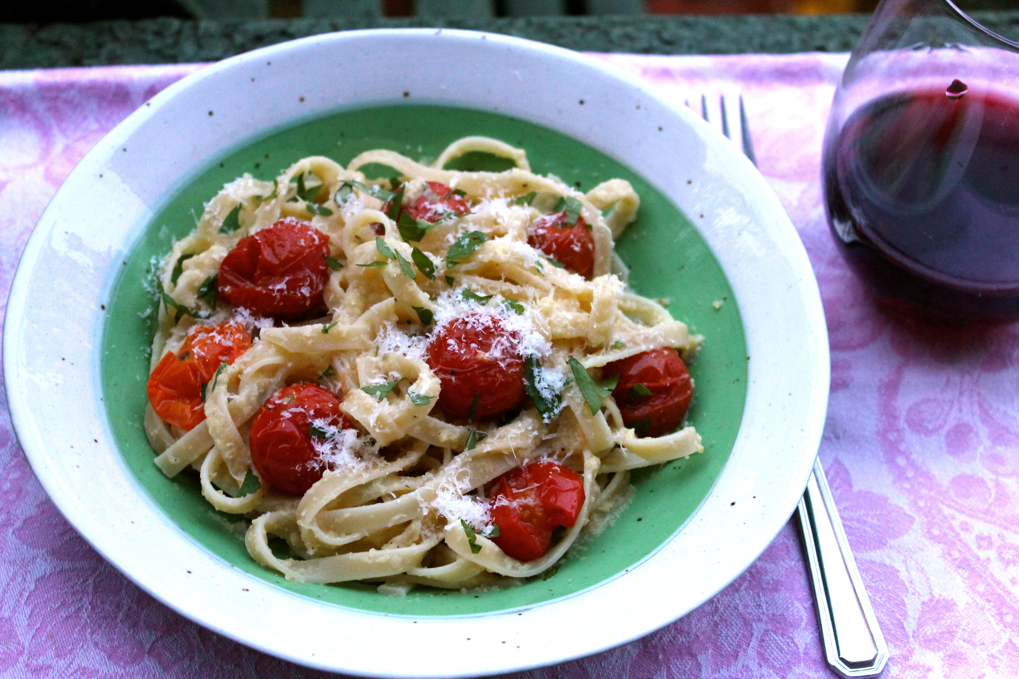 You’d never know the sauce for this pasta dish is not cream or cheese based. Well, of course some cheese is used, but you can include as much or as little as you like.