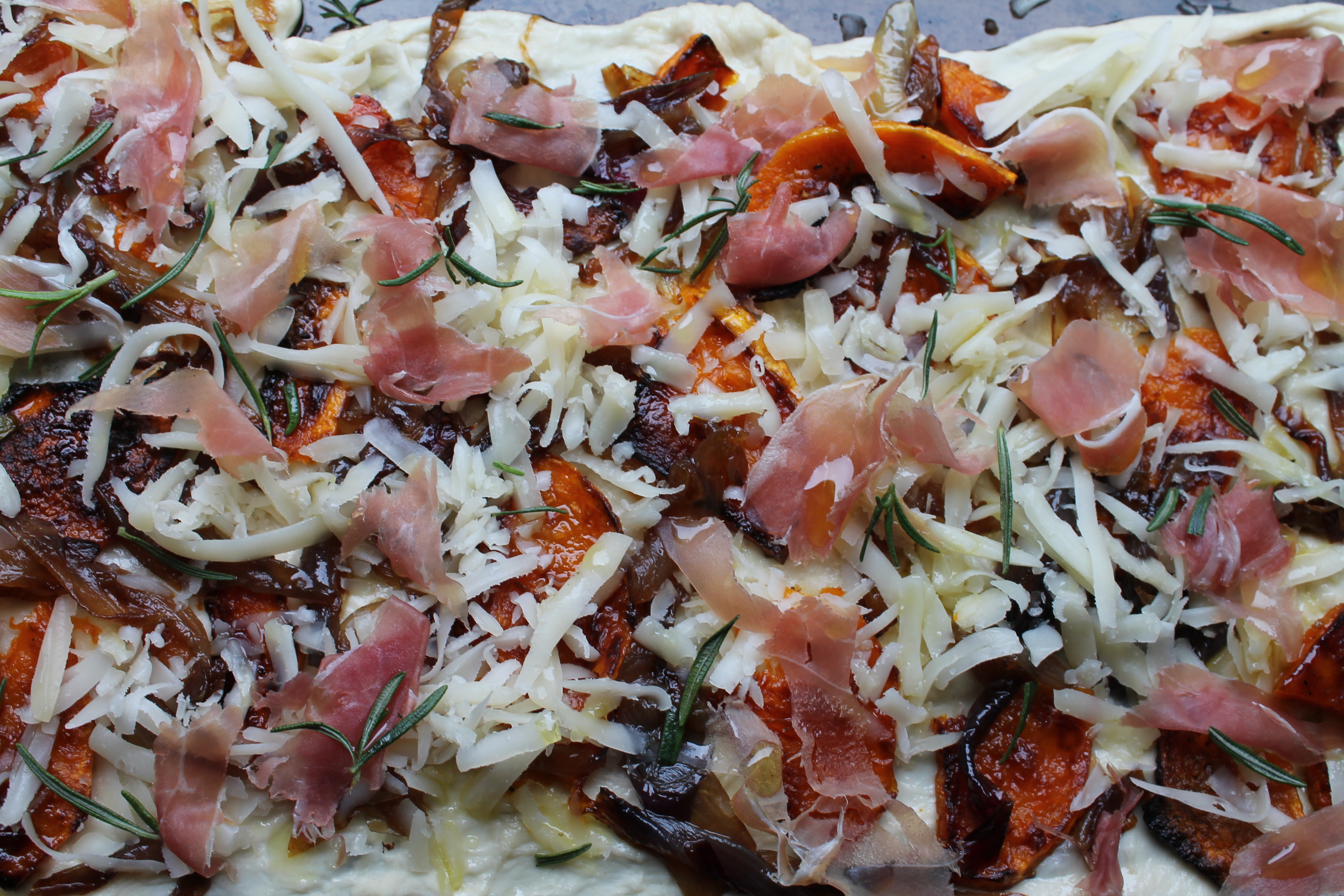 Preheat oven to 425º. Place the sheet of puff pastry dough into a tart pan, pressing the dough up the sides. Cover and chill until ready to fill.